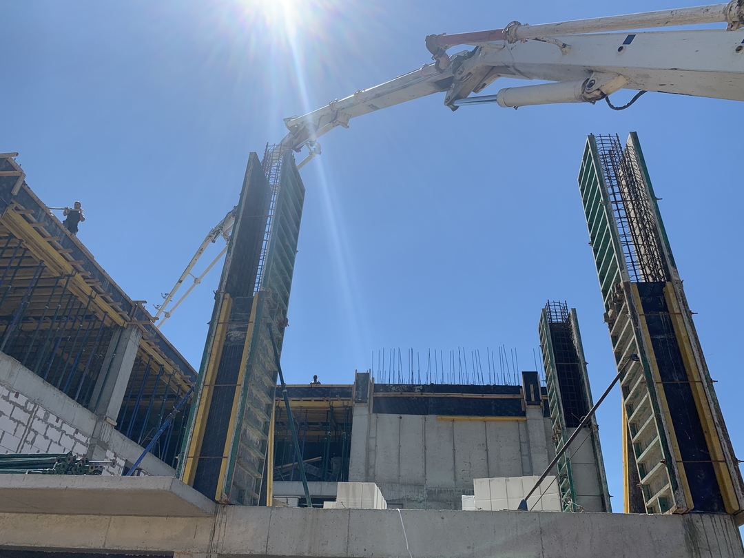 На сегодняшний день подрядная организация приступила к фасадным, кровельным и внутренним отделочным работам, на объекте полностью завершены земляные работы и смонтирована котельная. В двух блоках уже установлены окна, каркасы завершены в трёх блоках из пяти. Продолжается монтаж подпорной стены, внутренних и наружных инженерных сетей, а также, разработка котлована для локальных очистных сооружений.